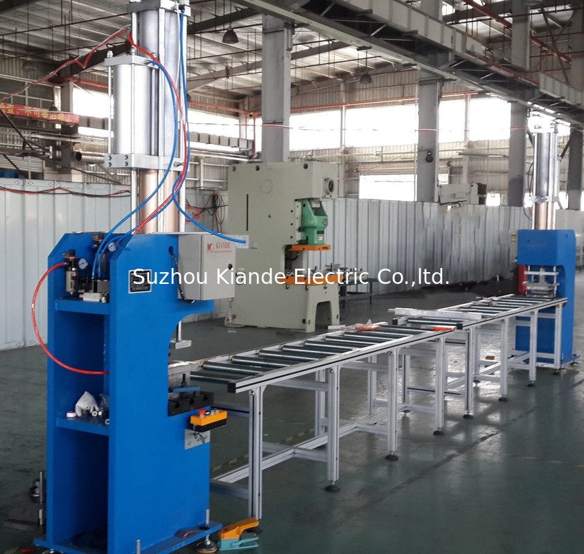 Una punzonadora de la barra de distribución digital se utiliza para perforar los dos extremos de la barra de distribución al mismo tiempo para garantizar paralelismo entre el perfil de la barra de distribución y el conductor. Este paralelismo asegura la conexión confiable entre el conductor y la junta que pueden controlar el levantamiento común de la temperatura. El punto clave es que la máquina puede ajustar el coeficiente reencuadernado según el material y la anchura del conductor. El coeficiente del rebote varía doblando o diversa anchura del conductor y esta clase de ajuste pueden garantizar el paralelismo.